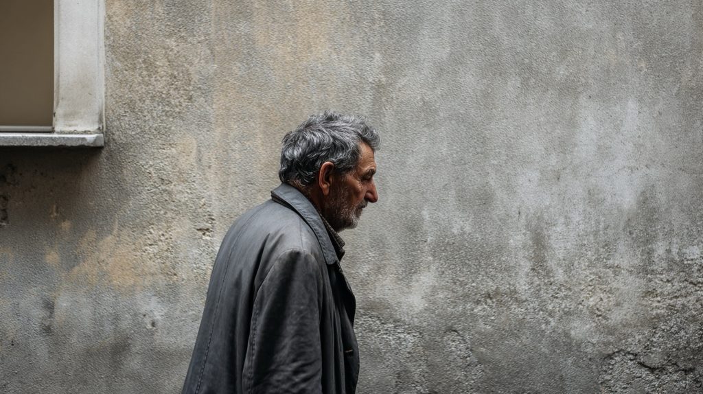 Il s’excuse et s’efface presque lorsque j’arrive à sa hauteur. Il est plus petit que moi, chétif, marqué de rides et de fatigue. Du même gris que l’enduit des façades. Il s’excuse et me laisse passer. Hagard. Légèrement vouté. Nos regards se croisent. Je souris, sans doute. Je souris et il me demande, très poliment, la direction. Il va vers les plateaux, au nord. Une résidence. À pied. Il ne peut pas prendre le bus. Oui, c’est par là. J’indique comment se rendre à la gare, et monter ensuite. C’est loin. Ce sera long. Il devrait prendre le bus. Il ne peut pas. Il ne semble pas non plus capable du chemin à pied. Il est épuisé. Si ça va ? Ce n’est pas ça. Il a dormi dehors. À la rue. Rien mangé depuis hier. Rien ce matin. Même pas un café. Il sort de prison. Je comprends. Qu’il soit dans cet état. Pas qu’on laisse sortir sans solution pour le jour qui suit. Il a rendez-vous. Un tuteur. Un logement. Il a fait six mois. Je ne veux pas savoir. Cela ne me regarde pas. Ni combien, ni pourquoi. Je fouille ma poche. De ma main à sa main, ce qu’il faut pour un café, un morceau de pain, le bus. Il n’a rien demandé. Se serrer les coudes, c’est tout. Qu’il monte jusqu’au plateau nord. Jusqu’à son nouveau départ. Il promet : s’il me croise un jour, il remboursera. Il promet.
