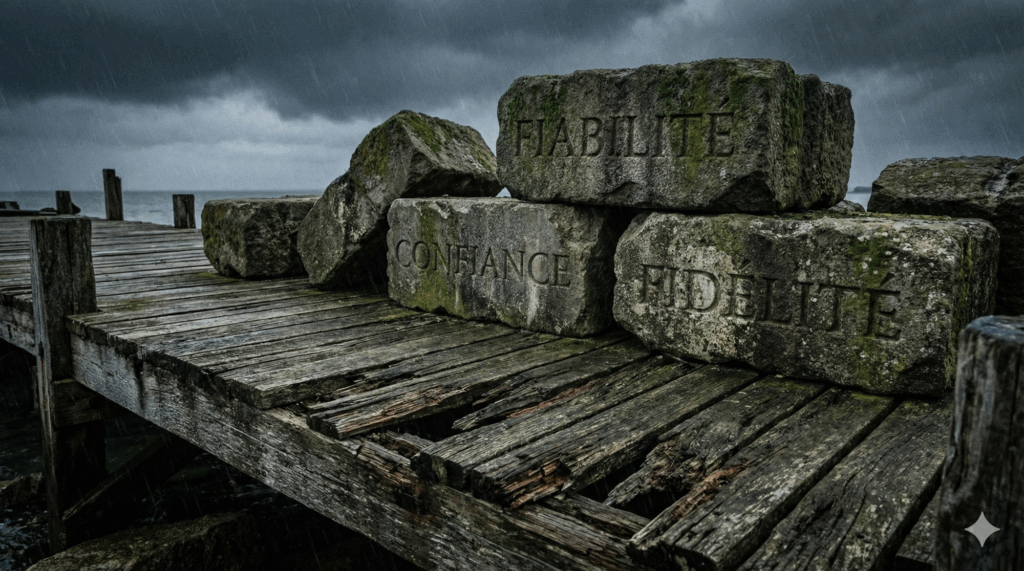 Il y a eu des lézardes et des quais affaissés. Des naufrages. Ah, ça n’aura pas été une partie de plaisir, et c’est toujours là. Le fantôme de la fiabilité, le brouillard de la confiance, les planches qui n’en finissent pas de pourrir.